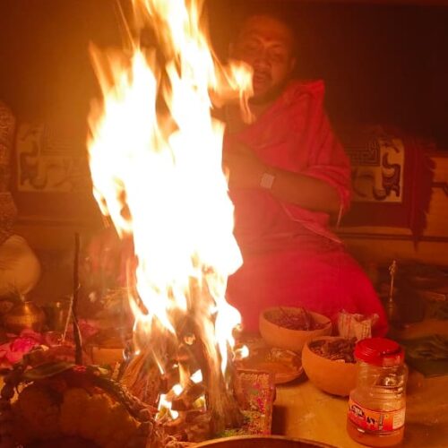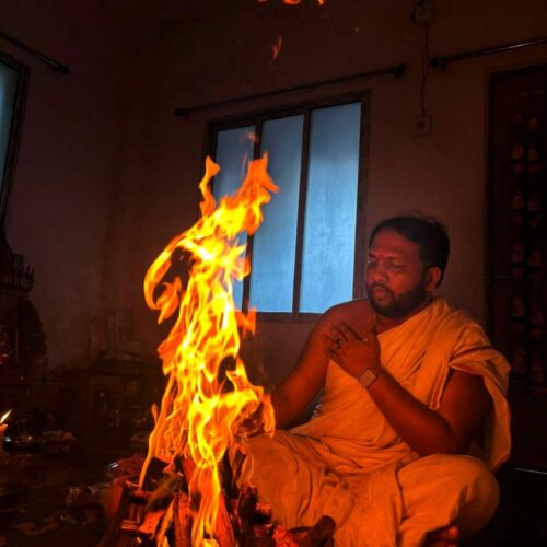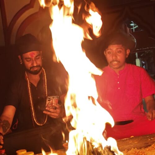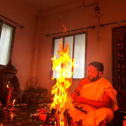 It is said that shortly after cutting down an ancient banyan tree to construct the Chandi temple, Mahesh Chandra passed away — a sign of divine fulfillment of destiny. His son, Harish Chandra Ray Chaudhuri, completed the sacred task. In earlier times, animal sacrifice was part of the ritual — but the present heir, Nandadulal Ray Chaudhuri, discontinued the practice, replacing it with offerings of devotion and compassion. The Ray Chaudhuri family has long been rooted in Tantric worship. Subhadip’s grandfather, Shanti Chandra Ray Chaudhuri, was a revered practitioner of Tantra and a devotee of Maa Chandi, with disciples across India. Their Kuladevi (family deity) is none other than Dakshina Kali of Kalighat. From childhood, Shubhadip was drawn to the Mother’s energy — singing Her hymns, visiting temples, and engaging in spiritual discipline.