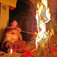 ভক্ত দীর্ঘদিন এই পথের পথিক হওয়ায় এমন তিথিতে পীঠ হোমের অভিজ্ঞতা আগেও রয়েছে তাঁর। শুধু তাই নয় এই তিথিগুলিতে শ্মশান হোমের মাহাত্ম্যও আলাদা। যাই হোক, ভক্তরাও একসঙ্গে গিয়েছেন মায়ের মন্দিরে। ঘন অন্ধকার, সঙ্গে শেয়ালের চিৎকার, গোটা অঞ্চল নিস্তব্ধ, পাশের শ্মশানে মরা পুড়ছে, তা দেখে প্রিয়জনদের হাহাকার সব মিলিয়ে এক রোমাঞ্চকর পরিবেশ তৈরি হয়ে উঠেছে গোটা মন্দির চত্বর। দূরে এক গাছের তলায় একটি প্রদীপের আলো ছাড়া গোটা মন্দিরে ছিটেফোঁটাও আলো নেই। শুরু হল পূজা এবং হোমের জোগাড়।